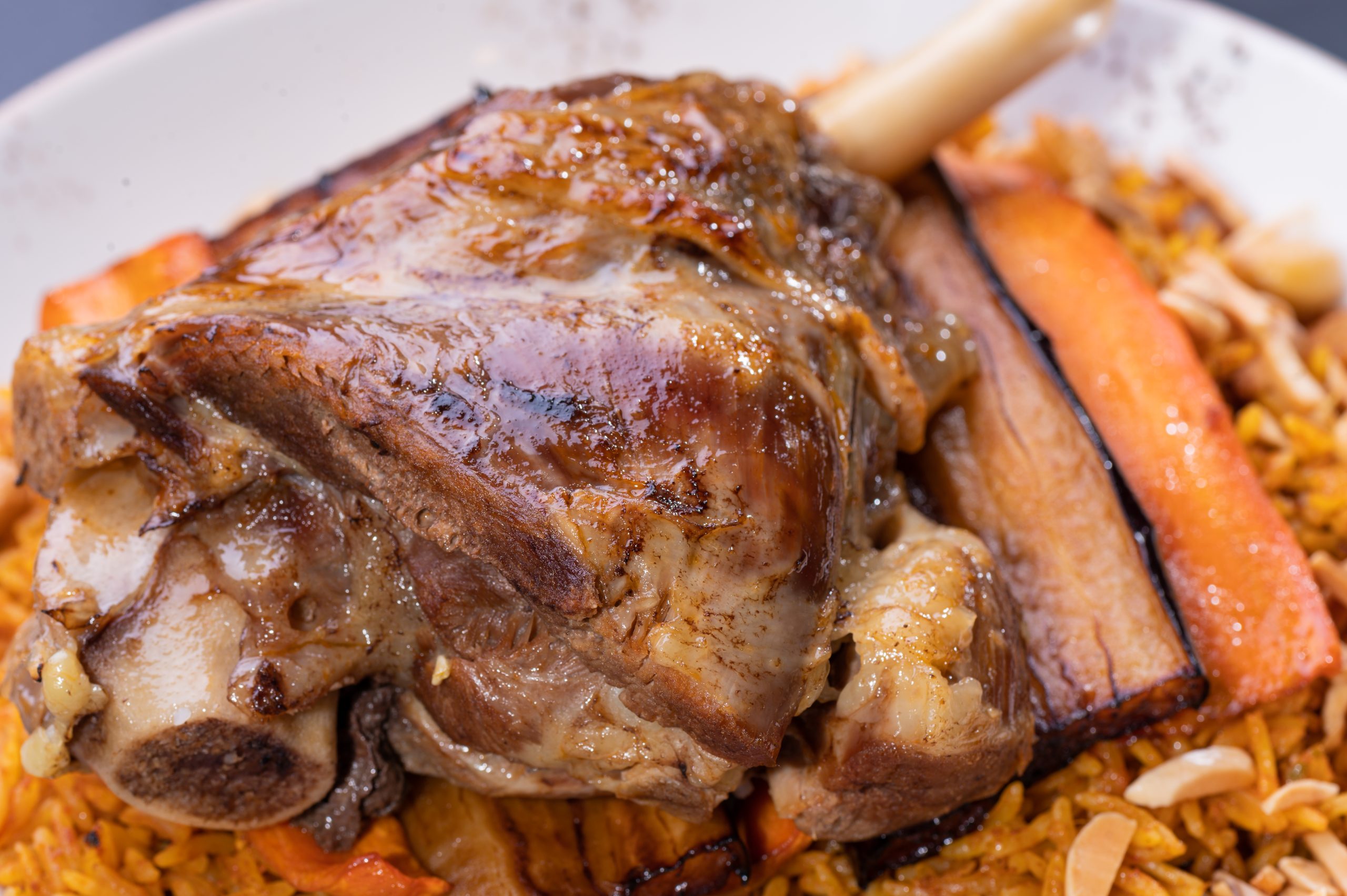 A traditional and distinctive dish made of aromatic spiced rice, lamb, and delicious fried vegetables, served in a unique style that blends rich flavors and perfect textures.